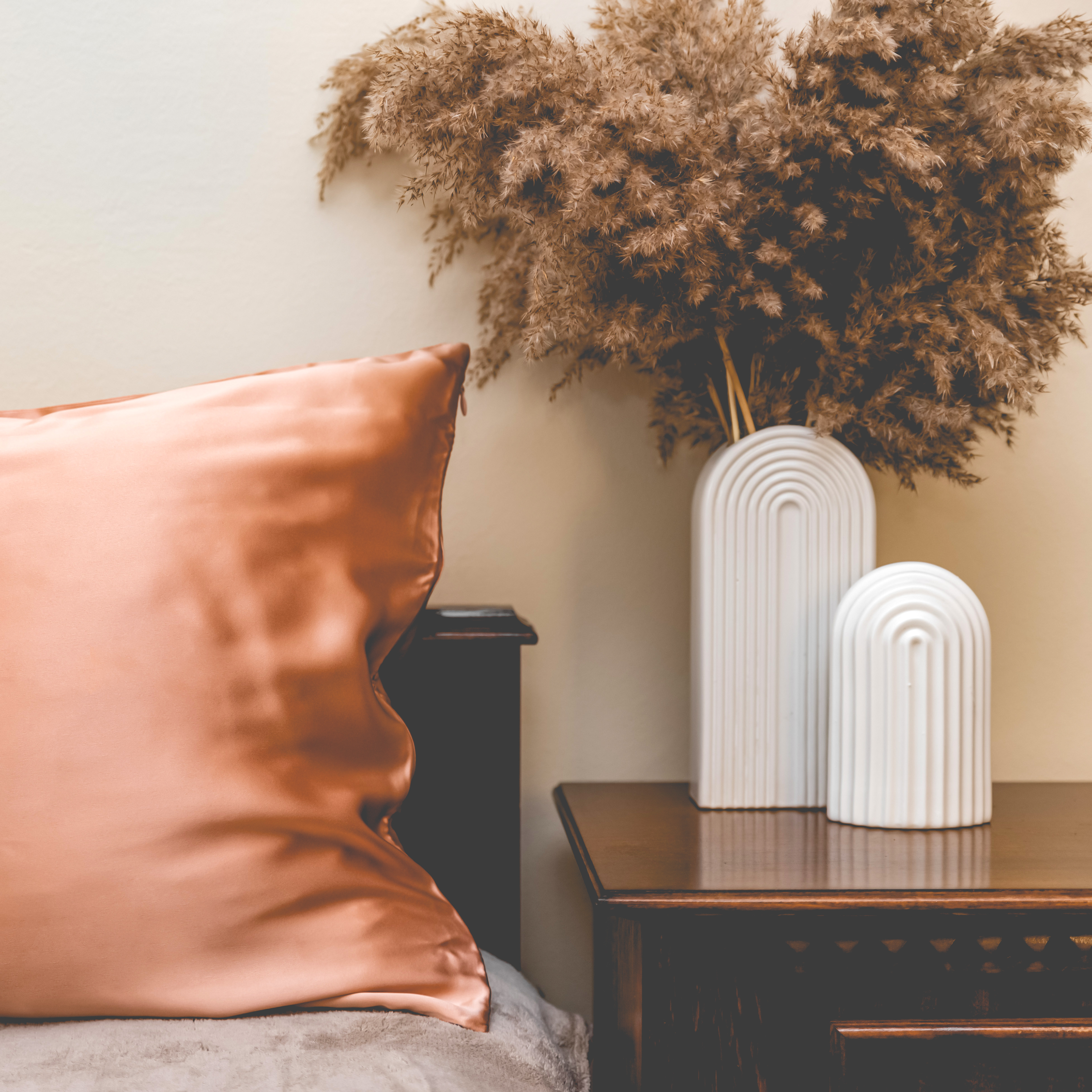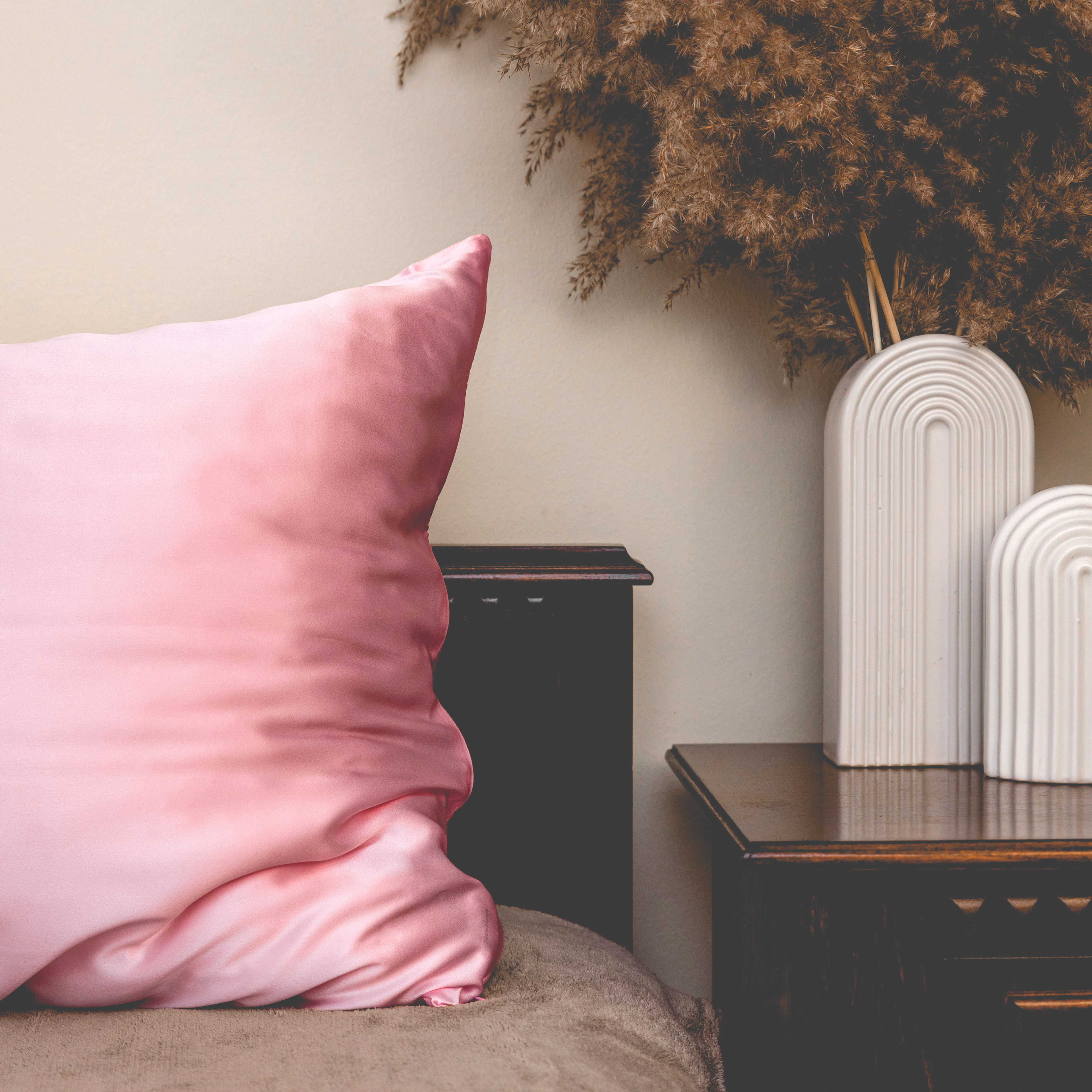 Product photography of luxury silk pillowcases